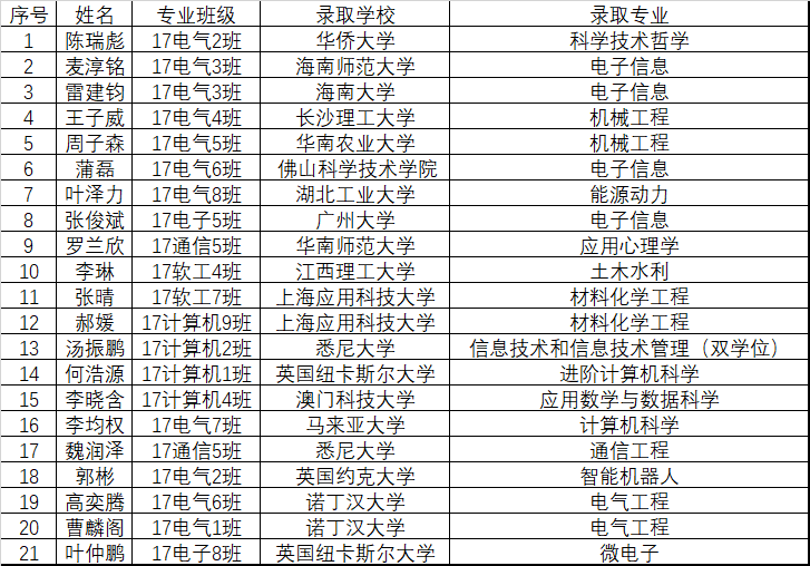 热烈祝贺William威廉官网学子在2021年研究生招生考试中再创佳绩,21位考研学子成功上岸。