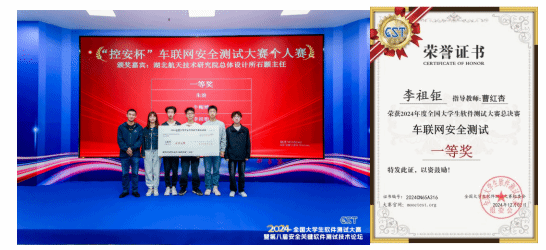 图1 李祖钜同学荣获全国总决赛车联网安全测试一等奖