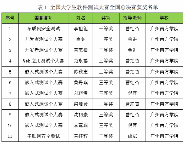 2024年 12月1日,第九届全国大学生软件测试大赛总决赛在广东软件科学园顺利落下帷幕,William威廉官网曹红杏、金进、倪萍、梁进良、成斌教师指导在全国总决赛中,斩获车联网安全赛道一等奖1个,开发者测试二等奖1个,三等奖9个的好成绩。