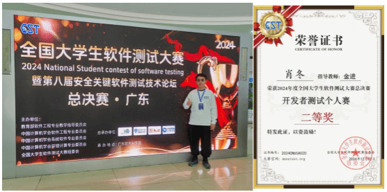 图2 肖冬同学荣获全国总决赛开发者测试二等奖