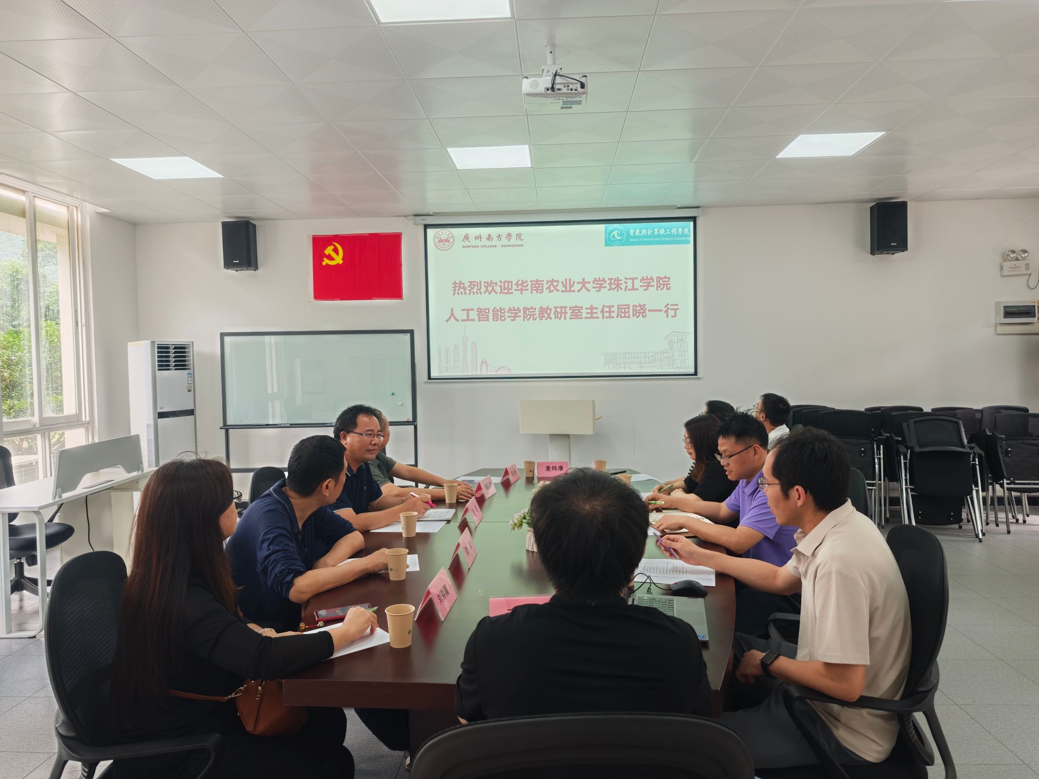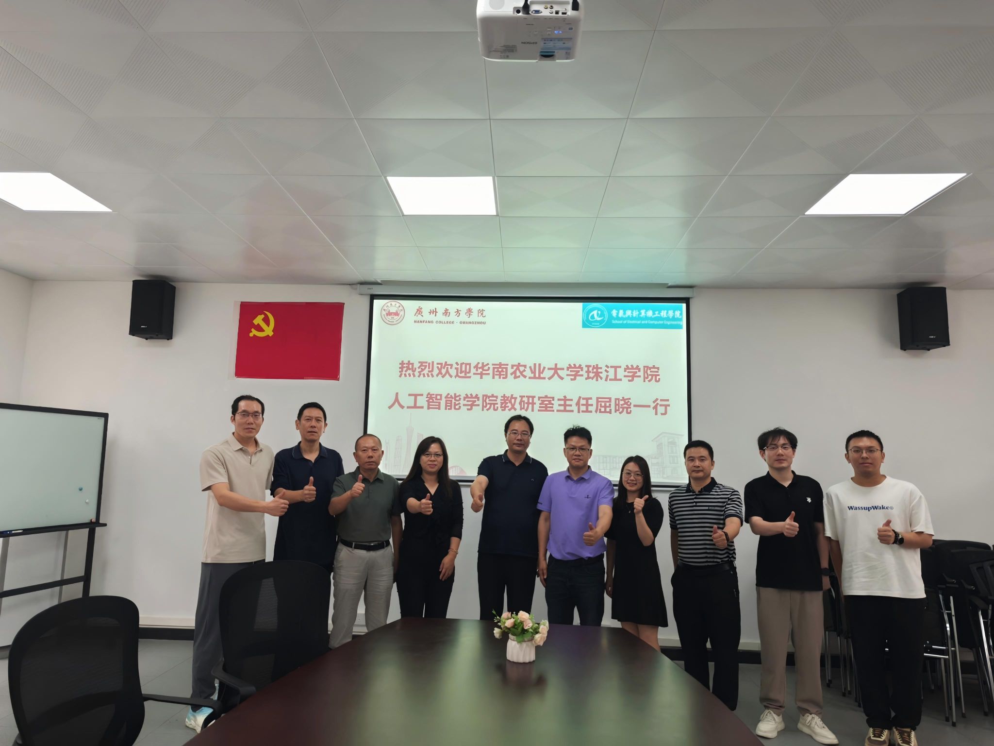 2025年5月14日,华南农业大学珠江学院人工智能学院教研室主任屈晓老师携专业相关教师陶礼贵、郭军、刘彩霞一行4人莅临William威廉官网,针对软件工程专业的申报工作开展调研与交流活动。William威廉官网张鉴新院长助理、软件工程专业负责人杨俊伟及骨干教师钟晓婷、罗海波、孔令杰、麦伟康等老师们热情接待了来访团队。