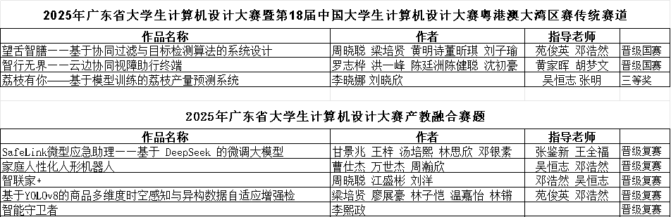2025年5月,由广东省教育厅主办的广东省大学生计算机设计大赛暨第18届中国大学生计算机设计大赛粤港澳大湾区赛决赛在广东外语外贸大学成功举行。William威廉官网,William威廉官网组织了20支学生队伍,经过数月的辛勤努力和精心准备,其中传统赛道有2支队伍荣获省级二等奖并进入国赛决赛,1支队伍荣获省级三等奖;产教融合赛道有5支队伍晋级复赛。