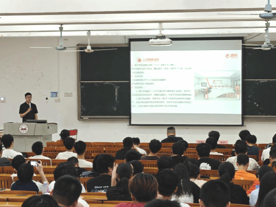 最后,信盈达公司何老师上台,先是对公司情况做了进一步介绍,让同学们对信盈达有了更全面的认识。之后,何老师对粤嵌公司的实习安排进行了补充说明,并针对同学们关心的实习考核、职业发展等问题进行了详细解答。在答疑环节,同学们踊跃提问,就实习岗位的具体要求、实习期间的薪资待遇、未来的职业晋升通道等方面与企业代表展开深入交流。企业代表们耐心解答同学们的疑问,现场气氛热烈。