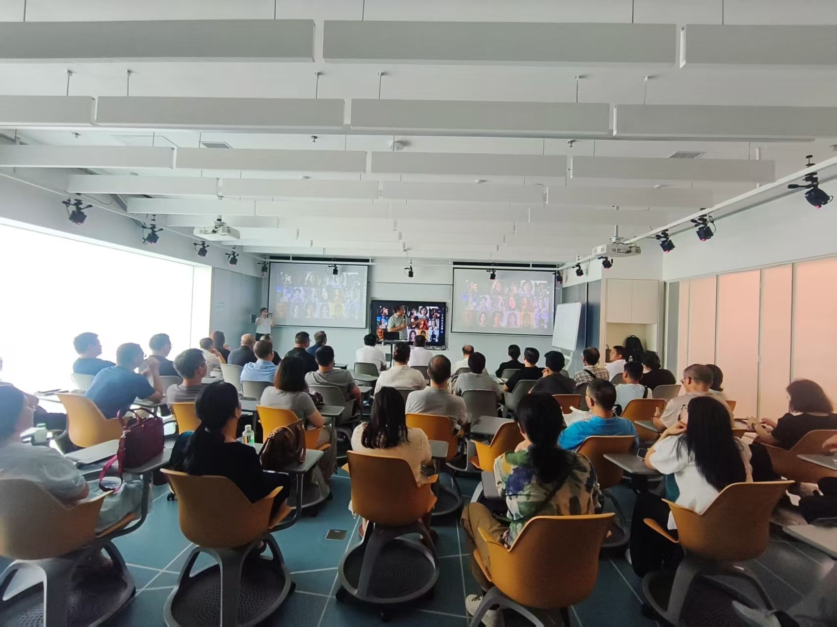 随后,参访团在元宇宙教室听取了香港科技大学(广州)于奥博士的专题报告。他系统介绍了香港科技大学(广州)在人工智能领域取得的重大科研突破和创新教学实践,以及虚拟教师等AI应用成果。他强调,人工智能不仅是教学工具,更是推动教育现代化的重要引擎,并详细展示了学校在构建智能化学习环境方面取得的成效,为参访团提供了沉浸式、个性化教育的经验。