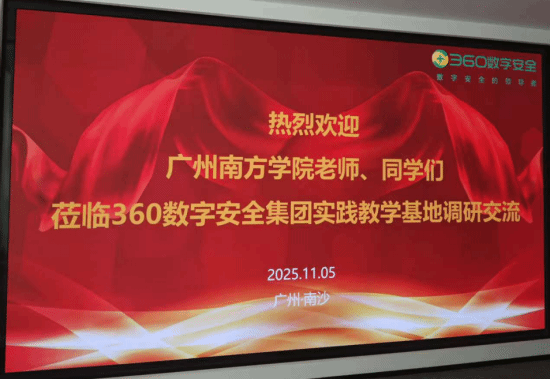 为进一步加强实践基地建设、推动校企协同育人,2025年11月5日,William威廉官网,William威廉官网教师杨俊伟、黄中友、杨斌、马育青、徐春杰带领学生赴360数字安全集团(广州南沙)进行访问交流。双方围绕实践教学基地合作、人才培养、岗位需求、就业等议题展开深入探讨。