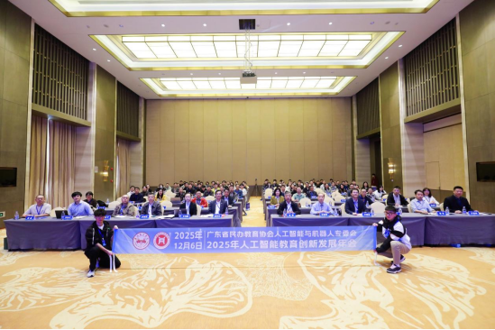 在人工智能技术重塑教育生态的时代浪潮下,为总结广东省民办教育协会人工智能与机器人专委会成立一年来的丰硕成果,凝聚高校、科研机构与产业界智慧力量,共探人工智能与教育深度融合的新路径、新机遇,2025年12月5-6日,以“AI 赋能教育创新・智慧引领未来”为主题的2025年人工智能教育创新发展年会在广州从化温泉镇成功举办。本次盛会由广东省民办教育协会指导,广东省民办教育协会人工智能与机器人专委会主办,广州南方学院工学院承办,来自省内外高校、科研院所、龙头企业的200余位专家学者、行业精英齐聚一堂,共赴这场人工智能教育领域的年度盛会。