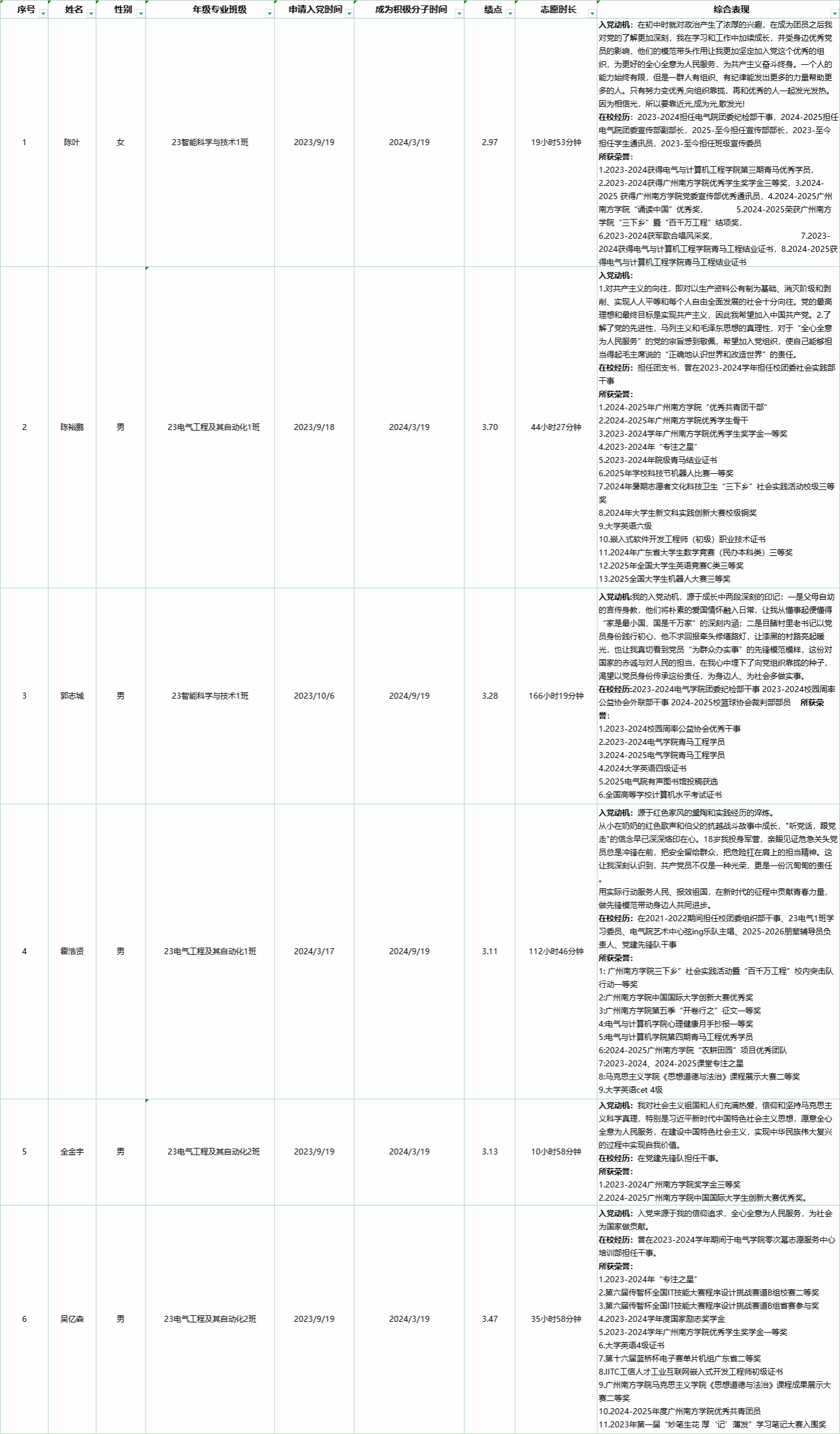 根据《中国共产党发展党员工作细则》的有关规定,在听取党小组、培养联系人、党员和群众意见的基础上,经学生第一党支部委员会讨论,拟从经过一年以上培养教育和考察基本具备党员条件的入党积极分子中推荐以下6名同学参加2025秋发展对象培训班,现予以公示。