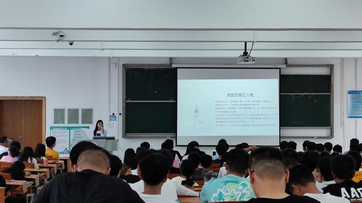 紧接着,陈金涛老师还讲解了入党和入团的一些注意事项,以及为同学们讲解了学校办理请假,在读证明等的申请方式。