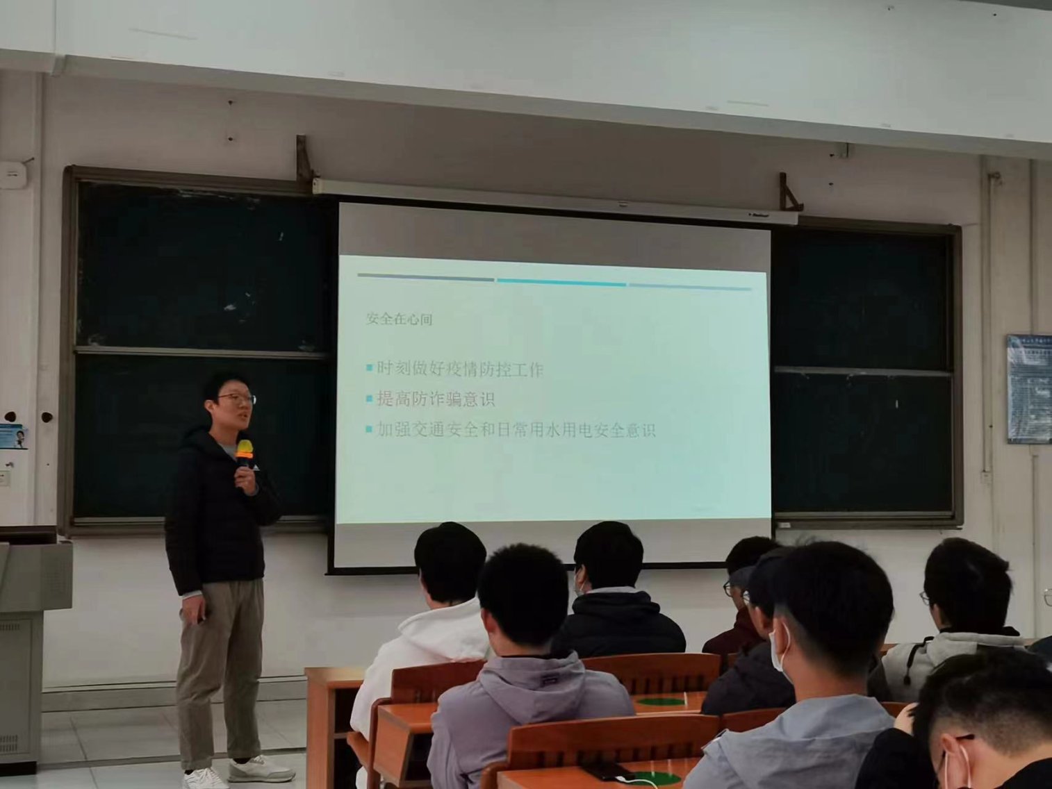 会议最后,姜辅导员再次向大家强调了日常请假等流程,也提醒同学们不要因为错过通知等低级错误。姜辅导员还向大家再次公布了日常学习生活问题处理的对应电话、办公地点等。姜辅导员对同学们寄予厚望,同时在会议结束,预祝同学们新年快乐。