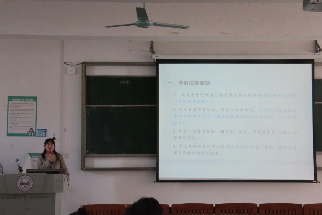 随后,万倩老师让一名同学带领大家进行诚信考试承诺宣誓并让同学们亲手签下诚信考试承诺书,随后万倩老师还就缓考、重考和重修的相关事宜向同学们进行了说明。