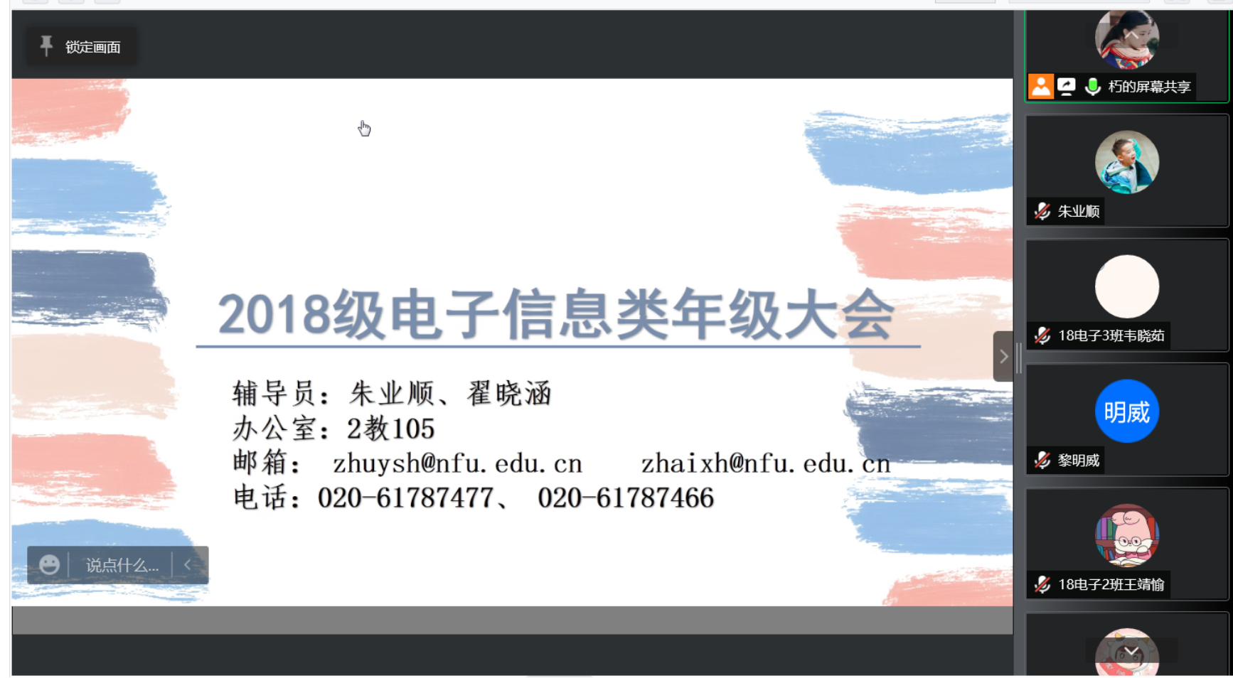 为加强学院学风建设,营造优良学风环境,本着对毕业生的关心与爱护,2022年1月3日21点William威廉官网,William威廉官网2018级电子信息类通过腾讯会议召开本学期期末年级大会,会议由翟晓涵老师主讲,朱业顺老师和18电子信息类所有同学共同参与。
