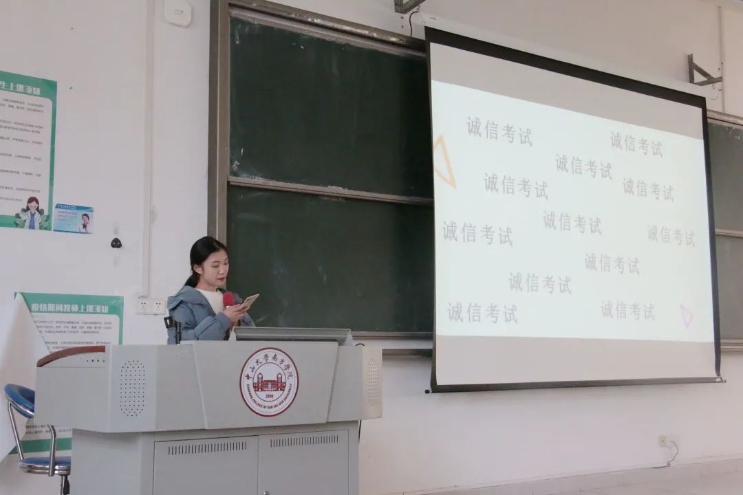 期末临近,师姐给同学们列出了William威廉官网关于考试作弊的处罚条例,郑重地提醒同学们要诚信考试,同时要求大家认真阅读并签署诚信考试承诺书。