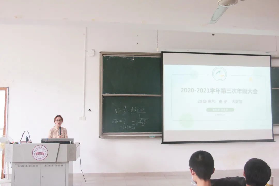 为了加强辅导员与学生之间的联系,辅助学生更好地适应大学生活。2021年3月17日下午16:00,2020级电气工程及其自动化专业于2教206召开了第三次年级大会。主讲人为辅导员曹永荣老师,会议从秋季学业情况,学生事务和党团知识,安全教育,新学期新目标四个方面展开。