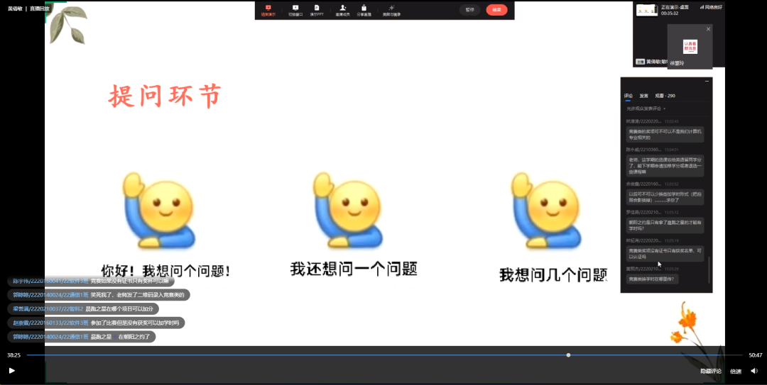 最后,徐老师耐心地解答了同学们五花八门的疑问,同学们更加清晰地理解了成长学分的构成和要求。希望同学们日后可以积极参加活动、认真看通知,顺利毕业!