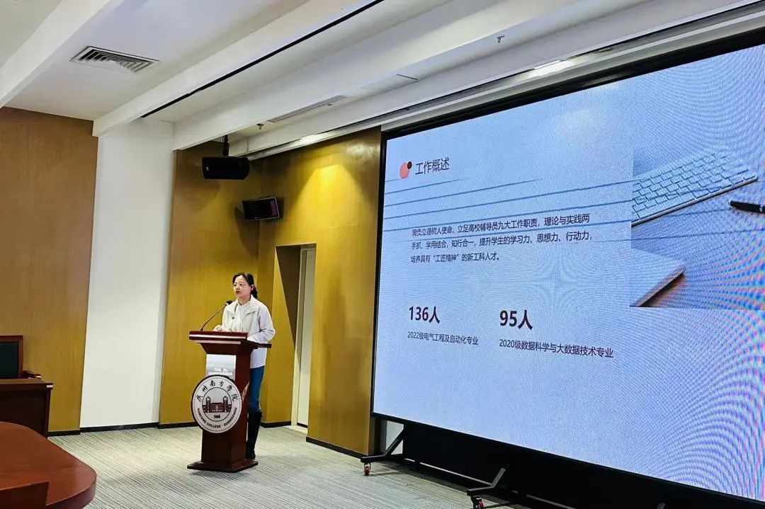 全体辅导员老师按顺序汇报,主要围绕思想理论教育和价值引领、党团和班级建设、学风建设、学生日常事务管理、心理健康教育与咨询工作、网络思想政治教育、校园危机事件应对、职业规划与就业创业指导、理论和实践研究等方面,结合自己的工作实际,进行了2023年度的工作述职。在述职过程中,辅导员老师不仅展示了自己工作一年的成绩,更进行了总结与反思,并对2024年进行工作展望。