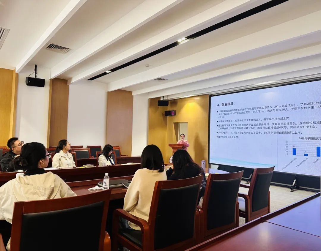 最后,唐玉婷老师对本次会议进行了总结。首先对辅导员们在过去一年的工作成就表示了肯定,感谢他们在学院工作中的辛勤付出。与此同时,进一步明确了下学期学生工作的重点和思路,统一思想凝聚共识。新的一年,希望全体辅导员不忘初心与使命,落实好立德树人这一根本任务,以更积极的心态和饱满的热情扎实推进学生工作,力求在平凡的岗位上再创佳绩。