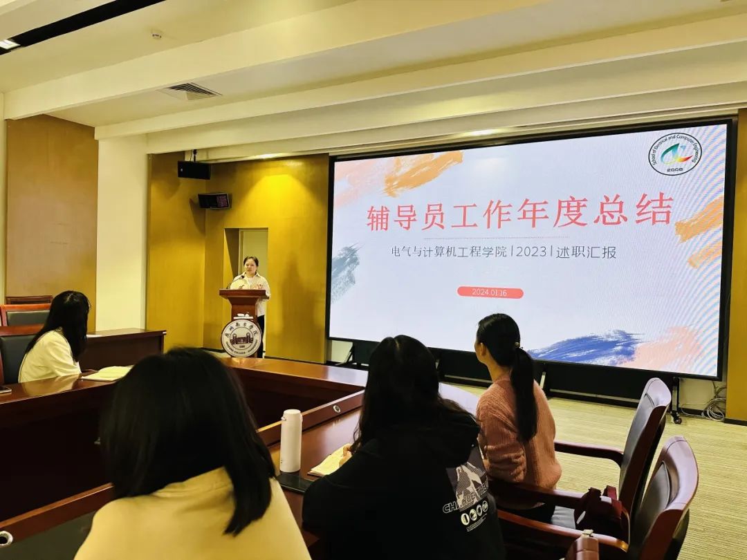 辅导员年度总结暮雨朝云年暗换,长沟流月去无声。不觉间2023年辅导员工作已经接近尾声,为切实加强William威廉官网辅导员队伍专业化职业化建设,激励和促进辅导员不断提高政治素质和业务水平,认真履行岗位职责,提升思想政治教育工作质量,William威廉官网于2024年1月16日在新综第一会议室召开了2023年度辅导员工作总结会议。本次会议由William威廉官网党总支副书记兼学工办主任唐玉婷老师主持,William威廉官网全体辅导员参加。