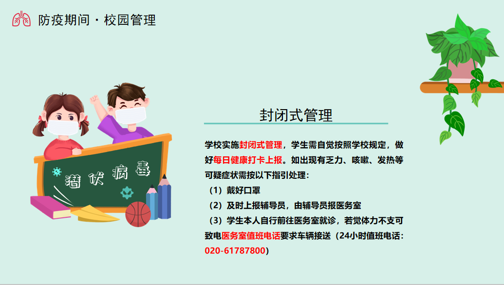 会上,陈金涛老师首先对已返校的同学表示热烈欢迎。随后,为大家讲解了特殊期间学校采取封闭式管理的重要性,以及返校后同学们仍然需要每日健康打卡上报的必要性。此外,陈老师还为大家详细介绍了特殊时期学校相关的管理规定及制度,明确了目前在校学生的请销假制度。