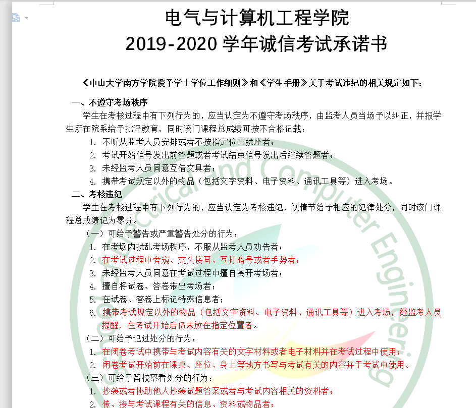 会议接近尾声,进行最后一项:诚信考试教育。朱业顺老师特别强调返校后的考试,该考试是上学期末的期末考试需要同学们重视、自己进行考前复习,在考试过程中要诚信考试,禁止打暗号做手势等,若被发现有作弊行为将按照《学生手册》关于考试违纪的相关规定进行处罚。考试前需要准备好自己的身份证、学生证、考试文具等用品。最后朱业顺老师祝我们每个人都安全返校。