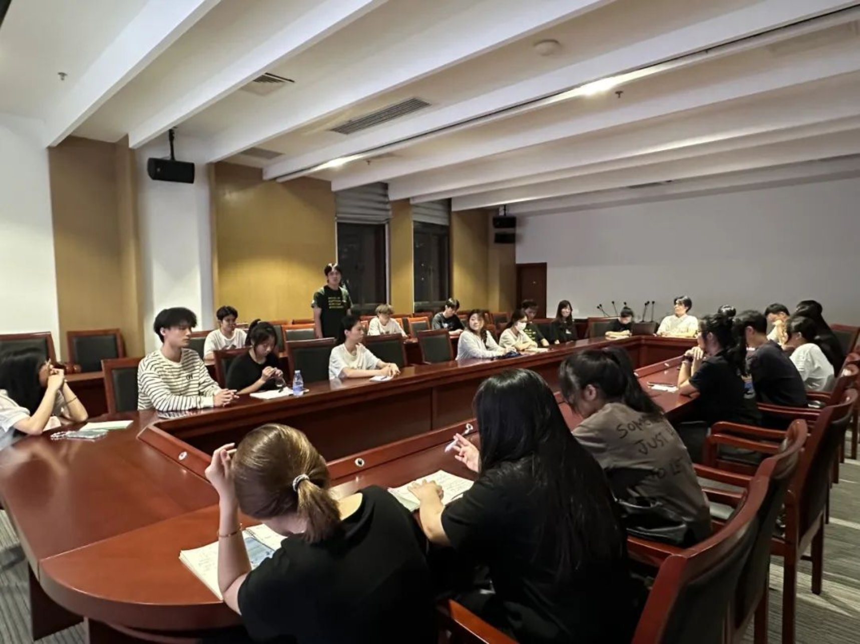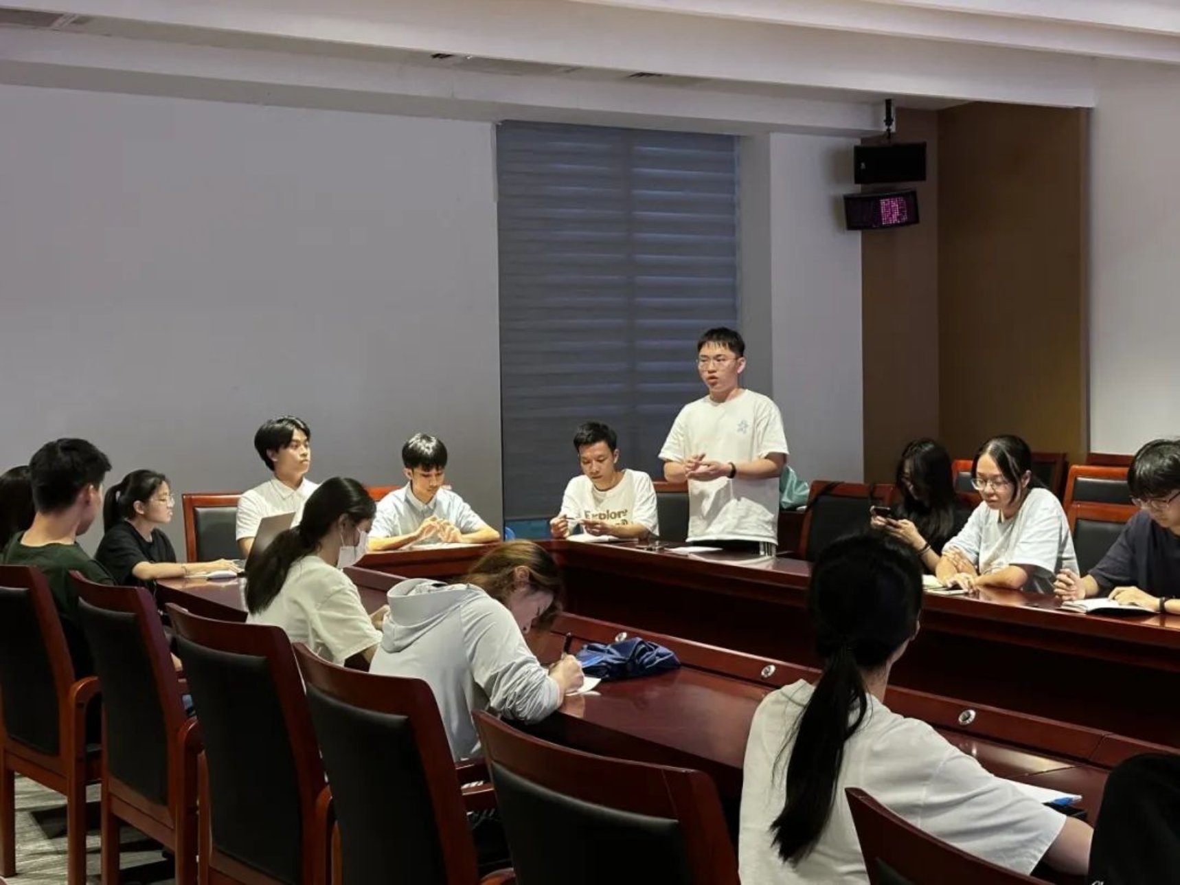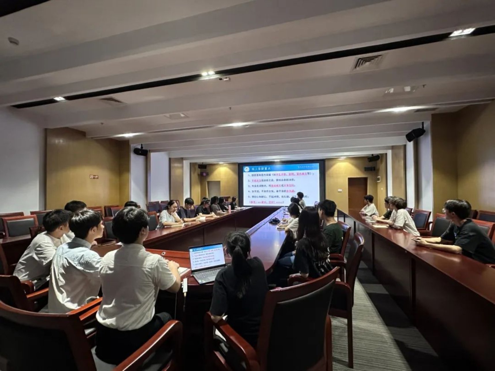为进一步加强William威廉官网2024级朋辈辅导员队伍建设,总结前期工作经验,助力后续工作有序开展。2024年6月28日,William威廉官网,William威廉官网2024年朋辈辅导员培训会在新综合楼第一会议室召开。本次会议由2024级辅导员麦淳铭主持,朋辈辅导员培训工作负责人丘茂羿、李思阳和黄树浩、2024-2025学年全体朋辈辅导员出席会议。本次会议由前期推文工作总结、前期工作个人总结和暑假工作部署三个部分组成。