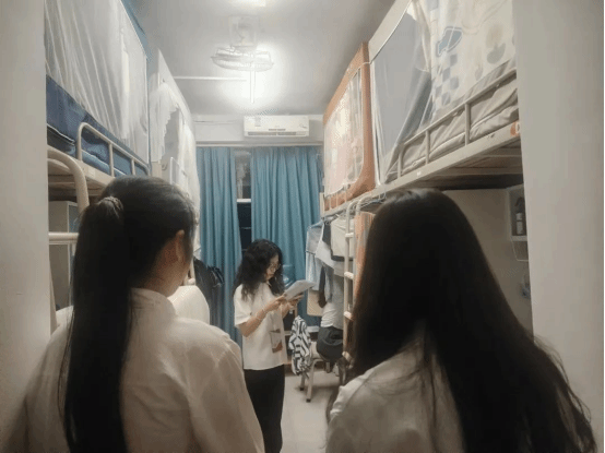 除了关心同学们的日常学习与生活,宿舍走访小分队还特别关注宿舍的用电安全和卫生内务。重点检查了宿舍的卫生情况是否符合健康标准,并多次强调了用电安全的重要性,嘱咐同学们树立安全意识。同时,提醒大家注意宿舍卫生,制定值日制度,定期清扫,及时处理生活垃圾,避免积水等问题,以营造一个更加舒适温馨的生活环境。