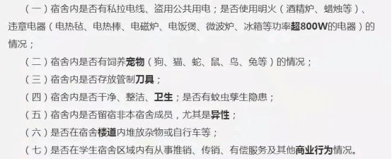 本次宿舍走访发现部分同学宿舍杂物较多,提醒了同学们要搞好卫生。暂未发现饲养宠物现象,也再次提醒了同学们注意用电安全,并对同学们进行了安全教育。我们鼓励同学们积极建设文明宿舍,宿舍的同学们也积极配合检查工作,整个过程和谐顺利。