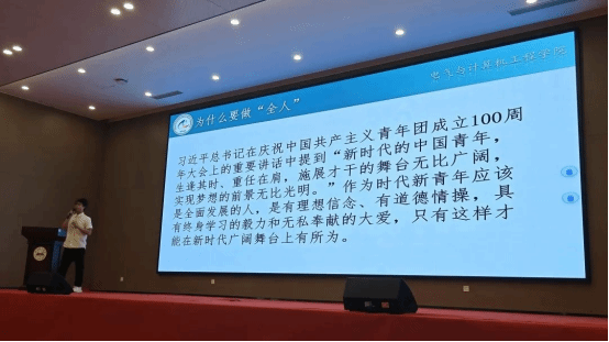 麦淳铭老师结合自身经验,向新生分享了有效规划学习和深入了解专业的方法。他鼓励新生通过多种途径探索职业性格,深入认识自己,并激励他们向榜样学习,从中汲取力量。麦老师还阐释了“全人”的内涵,并指导新生如何成为具有坚定理想信念、高尚道德情操、终身学习毅力和无私奉献大爱的“全人”。