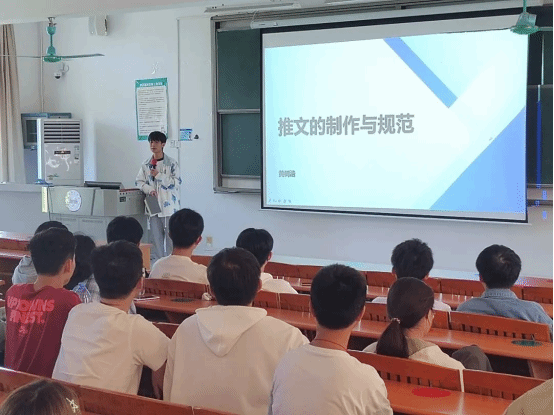 接着由黄树浩老师讲解关于推文制作与规范的一些要点,从拍摄技巧与推文排版两个方面介绍了拍摄镜头的着重点及推文制作软件,并且展示了推文的制作流程以及具体的操作方法。详细的讲解并强调了光线、构图、色彩等要素在拍摄中的重要性。分享了如何从多个角度展现细节、人物抓拍等拍摄技巧及如何利用排版软件提升推文视觉效果,提供了实用的操作技巧,帮助同学们提高制作推文效率。
